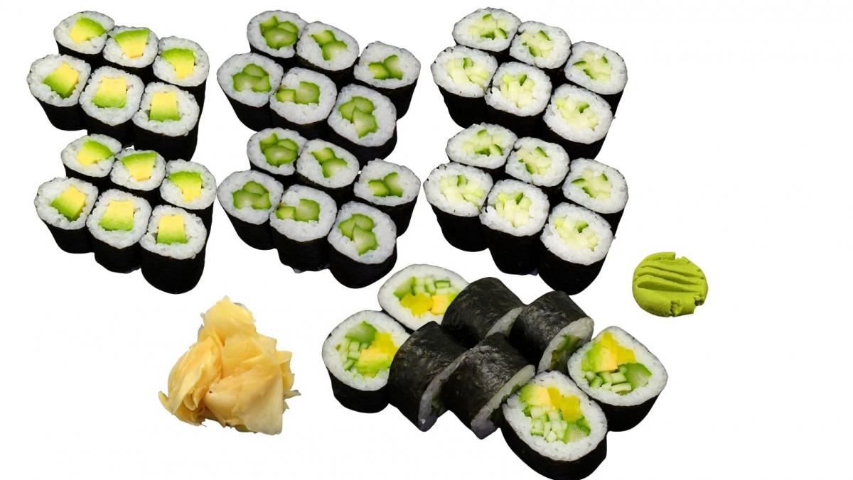 MAKI 44ks - chřest, okurka, avokádo, velká rolka plněná zeleninou