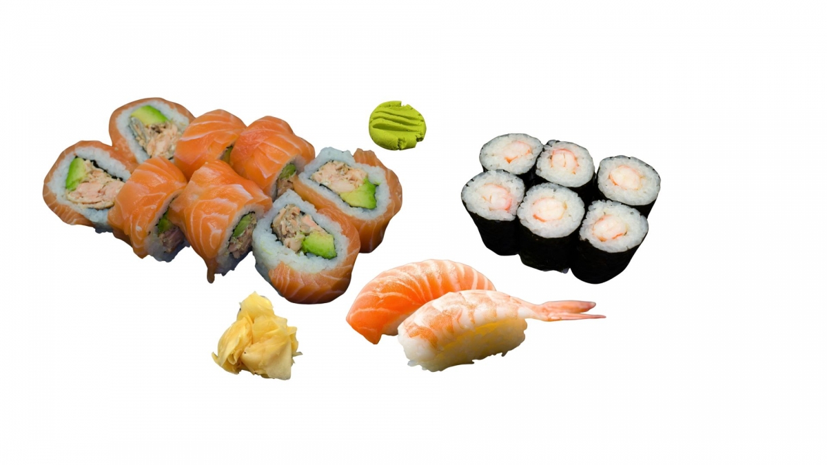 MAKI 20ks - avokádo, losos, California sesame NIGIRI 2ks - losos A- 4/11